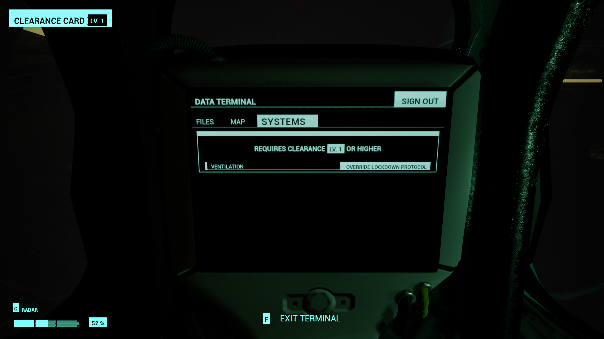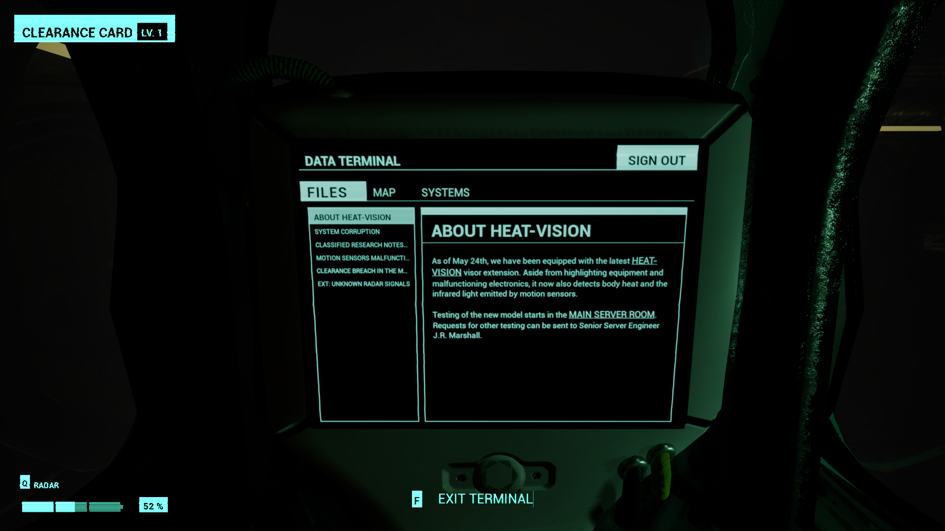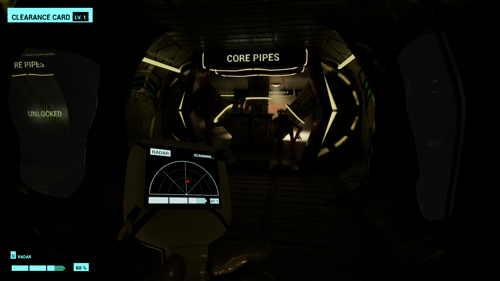 Navigating in the dark is difficult, especially when you're being hunted down by alien moths. To help the player out a bit they have 3 tools, 2 of which have UI.