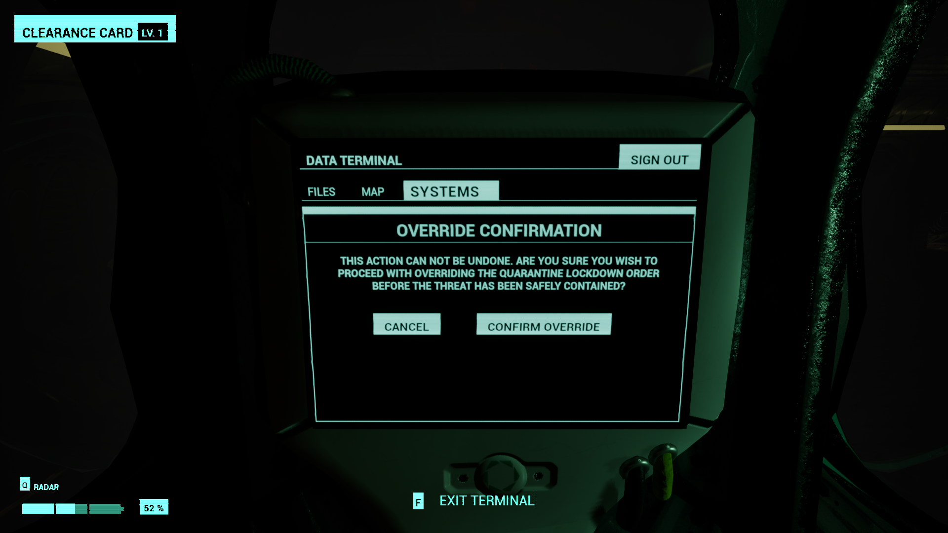 Systems: Takes in an AreaItem struct with text to display on the UI, references to doors in the level and needed clearance level.